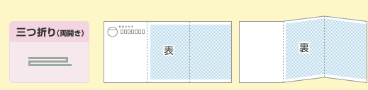 圧着DM・封書なら六面分(三ツ折りの場合)の情報量が同じ料金で郵送できます。